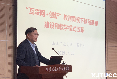 4月10日下午,国家级教学名师西北工业大学教授葛文杰受邀在F100报告厅为学院全体教师作了题为“‘互联网+创新’教育背景下精品课程建设和教学模式改革”专题报告。本次报告会专家由西北教发联盟选派,由学院教师发展中心和教学服务中心策划组织,崔杜武副院长、韩红建院长助理参加会议,报告会由崔杜武副院长主持。