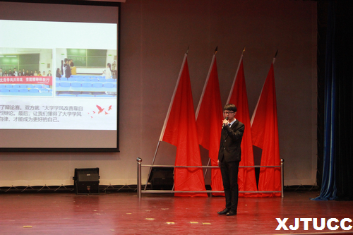 为凝聚学院广大团员青年,加强团支部的实践能力,提升我院广大团员青年的整体素质,团委于12月4日中午在教二报告厅举办“贯彻党团全新精神,共建校园优良学风”主题团日活动终审答辩暨总结表彰大会。莅临本次活动现场的嘉宾有:学院党委书记冯民柱、学生服务中心主任张学堂、外语系副主任赵永生、经济系副主任史冬梅、电信系主任助理张永超、学院团委书记吴昊翔。担任本次活动的评审是各系团学工作的负责老师,本次活动由彭新宇同学主持。
