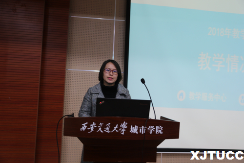 教学服务中心袁晓蕾副主任从教育教学改革、实践教学、学科竞赛、校企合作、教学管理、质量监控六个方面回顾了近五年来我院教学运行管理过程中的得与失,希望为学院本科专业建设中长期发展规划的进一步完善提供参考。外语系赵永生副主任具体介绍了学院大学英语分级教学的实施办法及举措。