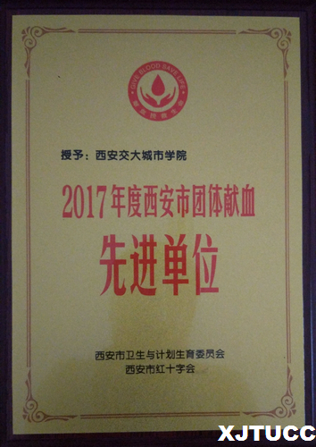 近日,yl7703永利官网获西安市卫生和计划生育委员会、西安市红十字会颁发的“2017年度西安市团体献血先进单位”荣誉称号。
