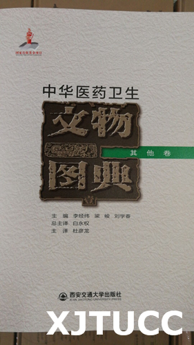 《中华医药卫生文物图典(一)》由中国中医科学院李经纬、梁峻、刘学春主编。2012年,西安交通大学出版社向新闻出版总署申请国家出版基金项目——“中华医药卫生文物图典(一)”立项并获得国家出版基金资助。该项目历时6年,医药卫生文物涉及故宫博物院等国内外100余家博物馆及众多私人收藏家的藏品,涵盖陶瓷、金属、纸质、玉石等多种文物形式,收集文物图片5200余幅,将中华医药卫生文物分为9卷21册,以图文并茂的形式全面呈现了我国灿烂的中医药文化,向国内外读者阐释中华医药卫生事业的起源、发展、壮大和扩展脉络,并对文物的艺术价值与技术水平进行评析,弥补了当前研究的缺陷和不足,使中华医药卫生事业的表征得以淋漓尽致地体现。图典以中英文对照的形式出版,非常有利于推动中医药文化“走出去”,为中华医药卫生文化国际交流提供了一个内涵丰富的“数据库”。