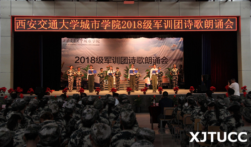 铮铮铁骨颂经典,扬我军威赞中华。9月4日下午,西安交大城市学院军训团在活动中心举行了2018级军训团诗歌朗诵会。学院党委书记冯民柱及部分系、部领导莅临现场指导。本次活动由学院工会副主席宋月梅、传播系教师李灿、学生服务中心副主任辛红伟、主任助理马瑞、主管王玉峰、团委书记吴昊翔担任评委。