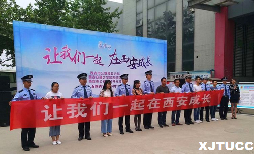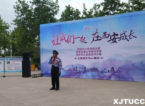 为深入学习贯彻党的十九大精神,纪念五四青年节,弘扬爱国主义精神,深化户籍新政“三进”活动,5月4日,学院保卫部联合公安经开分局和市局政治部组织举办了主题为“让我们一起在西安成长”的宣传活动,并向在校师生发放户籍新政宣传品,现场解答师生们有关落户西安的问题和流程。学院副院长张敬朝,市局政治部宣传处副处长刘智,公安经开分局副局长王世军,纪委书记许传彬,全国十九大代表、“时代楷模”、西安市公安局新城分局韩森寨派出所副所长汪勇,政治部警官艺术团成员,市局7名新警“成长之星”代表,经开分局政秘、户政、国保、尚稷路派出所干警,党政服务中心副主任姬志国、学院保卫部部长陈涛等师生代表共计500余人参加了本次活动。