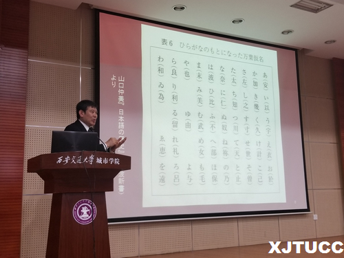 聘任仪式后,早稻田大学堀诚教授做了题为“日本汉字与中日语文教材内容对比”的讲座,详细介绍了日本汉字的来源及历史,结合鲁迅先生的作品《故乡》在日本的日译现象,为日语专业师生学习日语及研究日本文学提供了新的视角。接着,中外服日本留学部胡丽芳部长介绍了日本文化及留学生教育制度,让同学们对日本的大学教育有了进一步的了解,激发了学生学习日语和对日本文化的兴趣。在提问阶段,堀誠教授和胡丽芳部长详细、耐心地为同学们解答疑惑,令学生们收获颇丰。