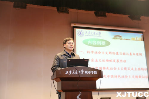 西安交大城市学院党的十九大精神宣讲专题报告会于12月13日下午在教二报告厅举行,此次邀请西安交通大学陆卫明教授为我院师生做主题为“当代社会主义新发展”的专题报告。学院领导、各部门负责人及全体教职工、学生代表参加了此次讲座。讲座由冯民柱书记主持。