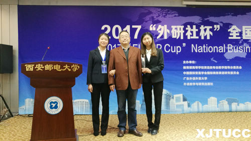11月4日,在西安邮电大学(长安校区)举办的2017“外研社杯”全国商务英语实践大赛西北赛区中,由外语系杜彦龙老师指导,商务英语专业高雪姣、王茹华、阴宇宁、任亚丽,唐倩五位同学为代表的“Hope of the Star”团队荣获三等奖。