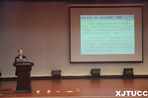 表彰活动结束后,经济系张武康、白丹、冯茜、李霁晨、李翼玮、叶超老师分别就“经济管理学术征文大赛”“全国高校商业精英挑战赛国际贸易竞赛”“全国高校商业精英挑战赛浩方杯创新创业竞赛”“ 全国大学生市场调查与分析大赛”“兴业杯”模拟炒股大赛、“税友衡信杯”全国税务技能大赛、经济系“创业创新杯”及“星火杯”等创新创业活动及学科竞赛进行了启动仪式和讲解说明,并鼓励大家踊跃报名参赛。最后,经济系主任杨健全老师进行总结发言,他向受表彰的先进集体和优秀个人表示热烈祝贺,希望同学们以优秀学生为榜样,努力拼搏,奋发进取,并鼓励大家以赛促学、学思结合、全面发展。至此,本次大会圆满结束。