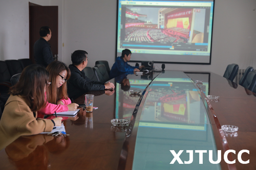 院领导、各部门领导干部、各党总支、党支部书记、民主党派代表、教师代表、学生代表在行政楼504会议室集体收看了党的十九大开幕会。部分教工党支部、学生党支部、团学组织、师生自发收看了开幕会。