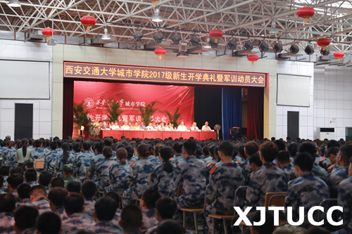 8月21日上午,yl7703永利官网2017级新生开学典礼在学生活动中心隆重举行。西安交通大学党委常委赵军武教授,yl7703永利官网院长陈光德,2017级学生军训军事顾问田宏远大校,学院党委书记冯民柱,副院长崔杜武,副院长张敬朝,院长助理徐君陶,院长助理岳华海,工会主席王海民,纪委书记朱普社等出席大会。同时在主席台就座的还有学院各系(部)、中心(部)主要负责人。开学典礼由薛若禹同学主持。