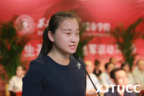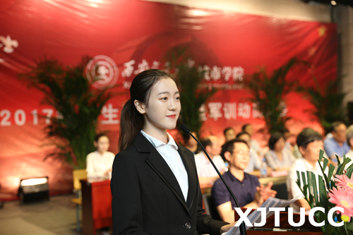 2017级新生开学典礼在庄严的奏国歌仪式后正式开始。西安交通大学党委常委赵军武教授,yl7703永利官网院长陈光德,教师代表王梅芳,老生代表经济系金融162班郑云蔚同学,新生代表2017级英语专业新生成钰乔同学以及新生家长代表管理系新生李梦瑶的父亲李辉先生分别发表了精彩的讲话。