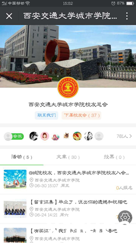 “城缘”平台根据地区、院系、行业分类,现已设立37个校友会,新入“城缘”的校友将被自动推送至相应的地区、院系校友会。今后,将进一步开通校友企业联盟和校内院系、社团、班级等活动模块。