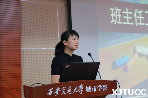 艺术系主任解安宁代表各系就如何开始班主任工作进行了发言。解老师强调,班主任工作要强练“内功”,不仅在自身专业发展中不断提升,更要学习教育学、心理学、社会学等知识,主动了解学生思想变化,重视每一位学生的成长发展,不断总结经验,提升工作能力。同时解老师分享了艺术系学生工作的经验。计算机系班主任何绯娟老师分享了自己担任班主任以来的心得体会,指出要当好班主任首先必须关爱学生,从“爱”的教育开始,注重指导、引导、辅导、疏导,做学生平等的朋友、做他们最真诚的倾听者,并跟大家分享了她在班级管理中的思路。最后,艺术系吴美双老师发言。她分享了自己在担任班主任工作过程中逐渐认识到班主任对学生大学四年成长的重要性,并不断克服困难,寻找到适合自己的工作方法,将教学工作与班主任工作有效结合。