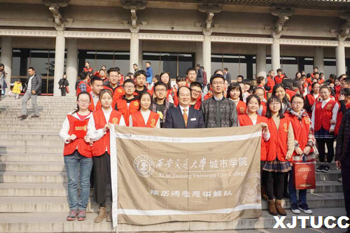 西安交大城市学院于2005年加入陕西历史博物馆志愿服务行列。在过去一年中,我院志愿者认真履行岗位职责,为推动文博事业以及学院志愿者工作的发展贡献自己的力量。在此次的表彰中,我院陕历博志愿者讲解队被授予“优秀青年志愿者讲解队”称号,我院雷苗同学、刘思为同学、李梦瑶同学、侯旭娟同学获得“2016年度十大杰出志愿者”。此外,由我院团委书记吴昊翔老师为获得“2016年度优秀志愿者”的韩彩霞、邓雨昕等19名同学颁奖并合影留念。