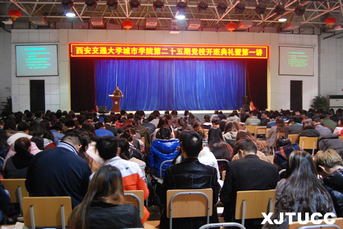 学院党委书记冯民柱致辞。冯书记对568名党员参加党课学习表示祝贺并提出了四点希望。一要政治上过硬。牢记党的历史,不忘初心,坚定理想信念,做中国特色社会主义的建设者和可靠的接班人。二要学习上优秀。珍惜大学四年的美好时光,肩负起历史使命,明确大学生的主要任务,在学习上做好榜样。三要综合表现优秀。发挥好示范引领作用,帮助身边学习上有困难的同学,将“两学一做”落到实处。四要重视党课要求,自觉学习,积极参加实践活动。