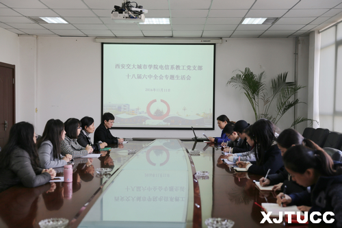 11月11日,电信系教工党员在行政楼508会议室集中学习十八届六中全会精神。学习会由党支部书记谭亚丽主持。