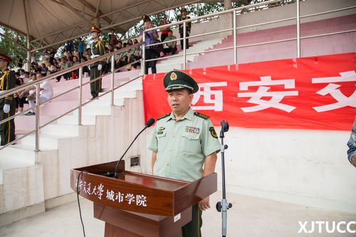 白鹿原学生军训基地主任田宏远大校讲话中,首先感谢我院为白鹿原学生军训基地提供了实践、展示与合作的平台;对指导员老师及军训团相关老师的大力配合表示感谢。田大校希望同学们将军训中学到的优良作风保持好,奋发图强,努力成才对国家对社会有用的人才。