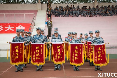 阅兵式结束后,学院党委书记冯民柱宣读了军训先进集体和优秀个人表彰决定,学院领导为获奖连队颁发了锦旗。陈光德院长向白鹿原学生军训基地赠送了锦旗。