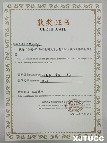 由高等学校国家级实验教学示范中心联席会经管学科组主办的“学创杯”2016全国大学生创业综合模拟大赛省赛于6月初如期举行。此次大赛通过“创业之星”经营模拟软件展开为期四个季度的企业模拟竞赛。在计算机系江帆老师的指导和带领下,由赵嘉恒(计算机301)、袁佳(信管301)、于欣(国贸302)三位同学组成的“影响力”团队参加了本次大赛,比赛中同学们集思广益、认真核算、谨慎决策,经过四个多小时的激烈“商战”,最终获得“学创杯”2016全国大学生创业综合模拟大赛省赛二等奖。
