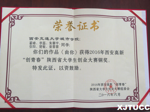 6月2日上午,由共青团陕西省委、陕西省教育厅、陕西省学生联合会、西安高新区管委会联合主办的2016年西安高新“创青春”陕西省大学生创业计划竞赛闭幕式在西北大学太白校区举行,yl7703永利官网学子共获得金奖一项(陕西省唯一一所荣获此殊荣的独立院校),铜奖三项,学院团委荣获“优秀组织奖”。