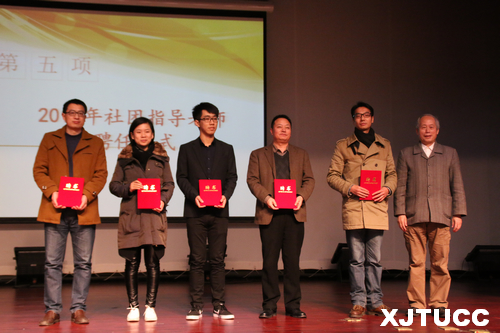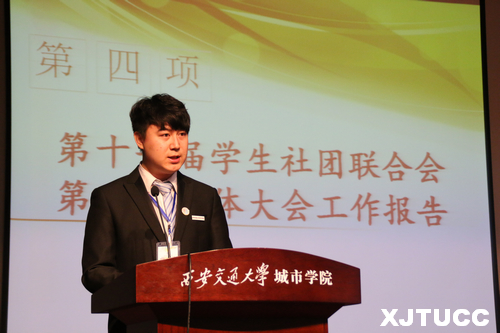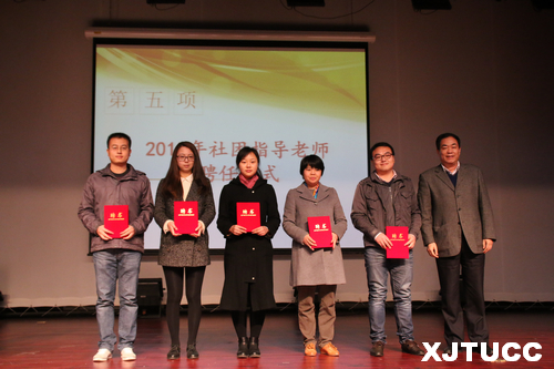 在庄严肃穆的国歌声中,本次大会在教二报告厅拉开了序幕。主持人致欢迎辞并介绍了与会领导及各高校代表后,由我院社团联合会主席刘瑞轩同学作第十一届社团联合会第一次全体大会工作报告。他对过去的工作进行回顾,展示了我院社团联合会在过去一年中取得的成绩。同时以史为鉴,对过去工作进行总结和反思,指出75家社团人也需要不断探索和创新,使社团活动质量稳步提高,精品活动有效开展,继往开来,推进社团发展更上一层楼。在社团指导教师聘任仪式上,学院领导向包括人文社科类、公益实践类、学术科技类、体育竞技类、文化艺术类五大类共30个社团指导教师代表颁发了任聘书。