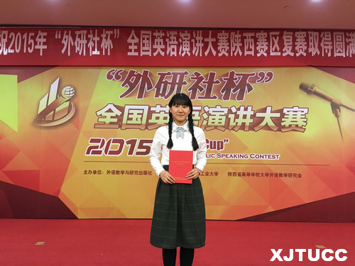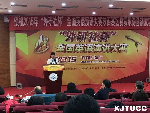2015年“外研社”杯全国英语演讲比赛陕西赛区分赛于近日在西北工业大学隆重举行。经过各高校初赛选拔,全省共有40名选手参加陕西赛区比赛。yl7703永利官网英语301班王悠同学荣获三等奖,韩红建老师获得“指导老师三等奖”。