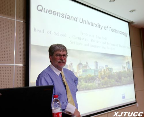 来访期间,John Bell教授为学院电信系、计算机系、机械系2015级大一新生作了昆士兰科技大学科学与工程学院的2+2双学位项目说明会。他开场以一幅优美的校园全景照片引出QUT所处澳大利亚第三大城市—布里斯班市区市中心的优越地理位置,再介绍到QUT团队研发出超级电容器能源车,意味着经过一次完整的充电后,汽车能够行驶500公里,与汽油动力车相似,同时也是现有电动汽车的两倍;接着他还讲到QUT的优秀学生毕业后申请到牛津大学的博士全额奖学金、自己创业成立人工智能专业公司、继续到世界顶尖工程科学院深造就业等学生培养案例。会议结束后,部分有意向赴澳留学的同学就留学费用、澳洲工作签证、学分互认等问题进行了详细询问。