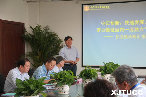 专家组组长闫剑群教授就巡视诊断工作的目的、任务和要求进行说明,并结合此次巡视诊断工作提出了具体的要求。他指出,开展专家巡视诊断工作是陕西省委、省政府着眼于教育本源问题,扭转高校“办学思路功利化、学科设置同质化、管理方式行政化”倾向,推动高校全面深化改革、强化特色优势、推进内涵发展、全面提高人才培养质量的一项重大举措。本次巡视诊断,专家组将通过实地考察、观摩、走访、访谈、听课看课、查阅试卷和毕业论文等诸多形式做好巡视诊断工作,与学校共同研讨扭转“三化”倾向的解决方案。他希望城市学院以此为契机,进一步推进学院深化改革,内涵发展,突出办学特色,全面提高办学水平和人才培养质量。
