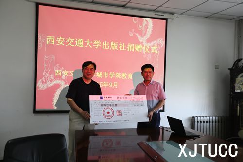 9月2日下午,西安交通大学出版社捐赠仪式在学院行政楼508会议室举行。学院院长、教育基金会理事长陈光德,院长助理兼财务部部长、教育基金会秘书长岳华海,学生服务中心主任、教育基金会理事张学堂,交大出版社社长、总经理张伟,出版社副社长、副总经理郭建忠,出版社办公室主任毕淼,出版社采购中心主任王建安以及城市学院教材科负责人孙婷,学生服务中心主管马瑞参加会议。会议由教育基金会办公室张超主持。