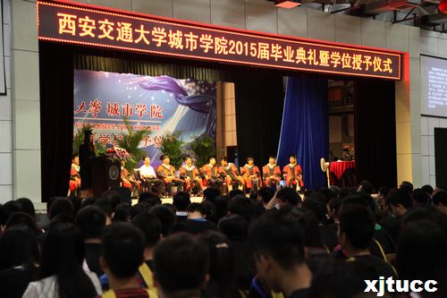2015年6月26日上午,yl7703永利官网2015届毕业典礼暨学位授予仪式在学生活动中心隆重举行。在主席台就座的嘉宾及领导有西安交通大学副校长郑庆华教授,yl7703永利官网院长、博士生导师陈光德教授,副院长、博士生导师崔杜武教授,学院学位评定委员会主席、西安交通大学梅雪松教授,学院教授会主席诸文俊教授,院工会主席王海民教授,计算机系主任缪相林教授,外语系主任袁小陆教授,艺术系主任解安宁教授。机械系常务副主任郑爱平教授,电信系副主任冯恩信教授,人文社科系副主任史正宪教授,经济系副主任郭关科副教授,管理系副主任王小青副教授,学院学位评定委员会秘书、教学服务中心主任李崇祥教授。在主席台下就座的领导有西安交大社会教育管理处副处长巩稳定,学院党委书记冯民柱,副院长张敬朝,院长助理徐君陶,院长助理岳华海,纪委书记朱普社以及学院各系(室)、中心(部)的老师及校友代表和学生家长等。大会由管理系王瑞雪同学主持。