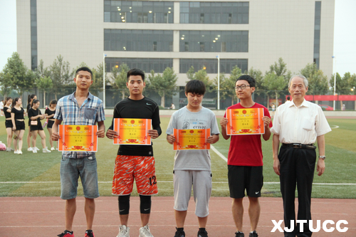 在紧张的计分统计后,本次比赛进入了颁奖环节。出席本次比赛的各位嘉宾与体育部的评委老师们为获奖队伍进行颁奖,同时也为前段时间进行的院系乒乓球比赛、篮球比赛的获胜队伍进行表彰,并合影留念。