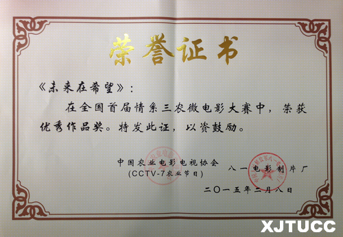 为繁荣和推动我国微电影创作,中国农业电影电视协会与八一电影制片厂联合主办"全国首届情系三农微电影大赛"。大赛通过动人的故事、真实的纪录,表现农业、农村、农民丰富多彩的生活,展示现代军人风采和军民共建中涌现出来的生动典型,表现民风民情、民族服饰、美食美景、民族艺术。本次比赛参赛的作品有数千部之多,入围作品100部。学院艺术系动画201郭磊同学拍摄剪辑、韩仲远老师指导的纪录片《未来在希望》获得大赛优秀奖。
