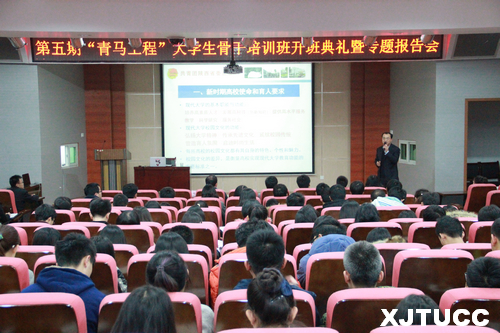 为了提高学生干部的理论素养、创新能力、服务意识和决策能力等综合能力,使其成长为中国特色社会主义事业的合格建设者和可靠接班人,西安交大城市学院团委于11月23日晚在F100报告厅举办了第五期"青年马克思主义者培养工程"大学生骨干培训班开班典礼暨专题报告会。出席此次开班典礼的领导及老师有:陕西省团省委副书记徐永胜、学院党委书记冯民柱、院团委书记曹嘉伟、院团委韩树、外语系团工委书记樊超以及机械系团工委书记徐泳铎。本次报告会由冯民柱书记主持。