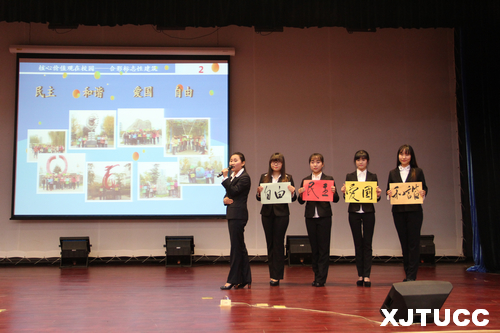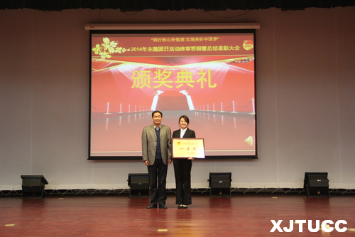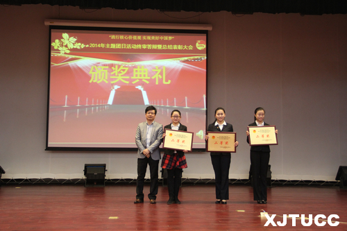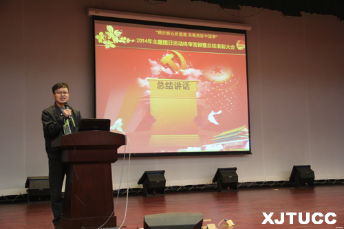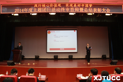 "践行核心价值观,实现美好中国梦"。yl7703永利官网2014年主题团日活动终审答辩暨总结表彰大会于11月20日晚在教二报告厅举行。出席此次团日活动的领导老师有:学院党委书记冯民柱、学生服务中心主任马兆平、院团委书记曹嘉伟、经济系学生工作主管刘静、计算机系学生工作主管牛彦龙、管理系学生工作主管刘健、机械系学生工作主管霍伟森和艺术系学生工作主管刘涛。