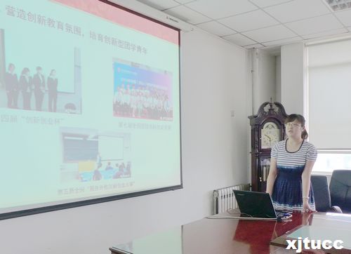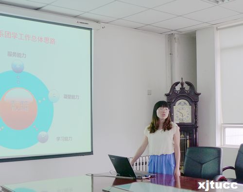 随后,各系团工委书记以PPT的方式展现并交流了各自所在团工委的特色团学工作。艺术系团工委书记李成首先介绍和分析了本系学生特点、专业特色,在此基础上开展了丰富多彩的、特色鲜明的具有艺术系特色的团学活动。刘敏涛代表计算机系团工委介绍了计算机系的团学工作情况,在说到工作成绩时,自豪地列出了一系列计算机系学子所获得的荣誉。经济系团工委书记茹静介绍了经济系的特色团学活动:模拟招聘会,她表示在模拟招聘会上准毕业生们实实在在体会到找工作的困难之处,并学到许多求职技巧。外语系团工委书记樊超介绍了外语系在过去一年里主办的各种形式的英语竞赛,包括英文朗诵、英文电影配音、英文写作等活动。管理系团工委书记朱艳丽在交流工作体会时,认为团学活动应坚持专业学习与培养人文素养相结合,得到了与会领导的赞同。其他各系也就本系团学特色工作开展情况和取得的成绩进行了介绍和交流。在展示交流的过程中,冯书记和马老师不时就各系特色团学活动提出了自己的认识与看法,并与各系团工委老师进行了亲切交流。