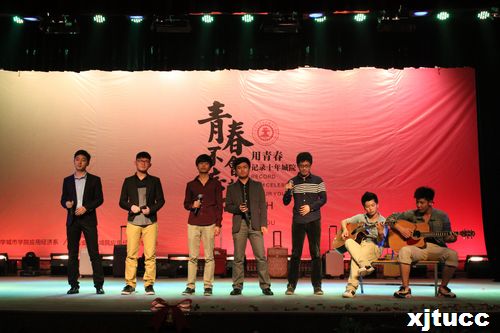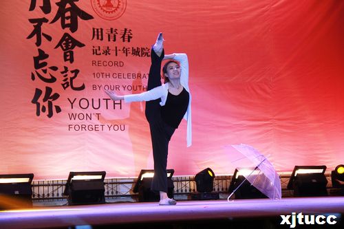 晚会在一段记录了城院十年点点滴滴青春脚步的视频播放中拉开了帷幕,一段欢快绝美的舞蹈,一段精彩纷呈的辅导员老师走秀,带动起了全场观众的热情,10级学生袁翔春同学用曼妙婀娜的舞姿带大家回到了“我们的时光”。史冬梅老师和谢伟彤老师合唱的《当爱已成往事》、杨健全老师演唱的《说句心里话》等等精彩节目使整场晚会高潮迭起,2010级的同学们用歌曲串烧表达了自己对学校深深的爱以及无限的感恩。经济系学工办全体老师精心准备的藏族舞蹈《吉祥》,向城院十岁生日献上她们美好的祝福。晚会在歌曲串烧《草滩九路的日子》中落下了帷幕。