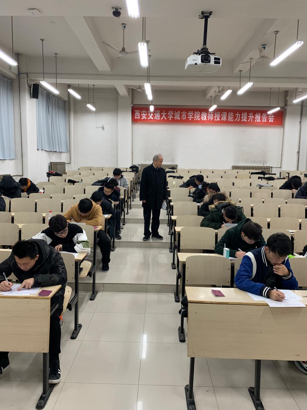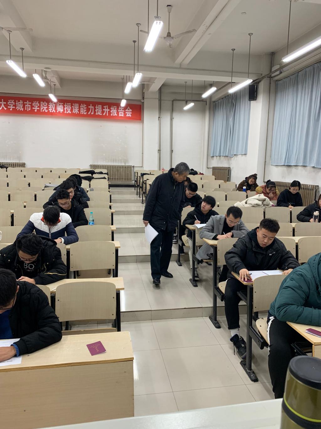 城市学院副院长崔杜武、教学服务中心主任陈晓南于1月6日上午对当天的期末考试考场进行逐一巡考,在巡考的过程中,发现监考教师认真负责,学生们都能认真答题,遵守考场纪律,全院考场秩序井然,考试进展顺利。目前,我院期末考试工作正在有条不紊地进行当中。