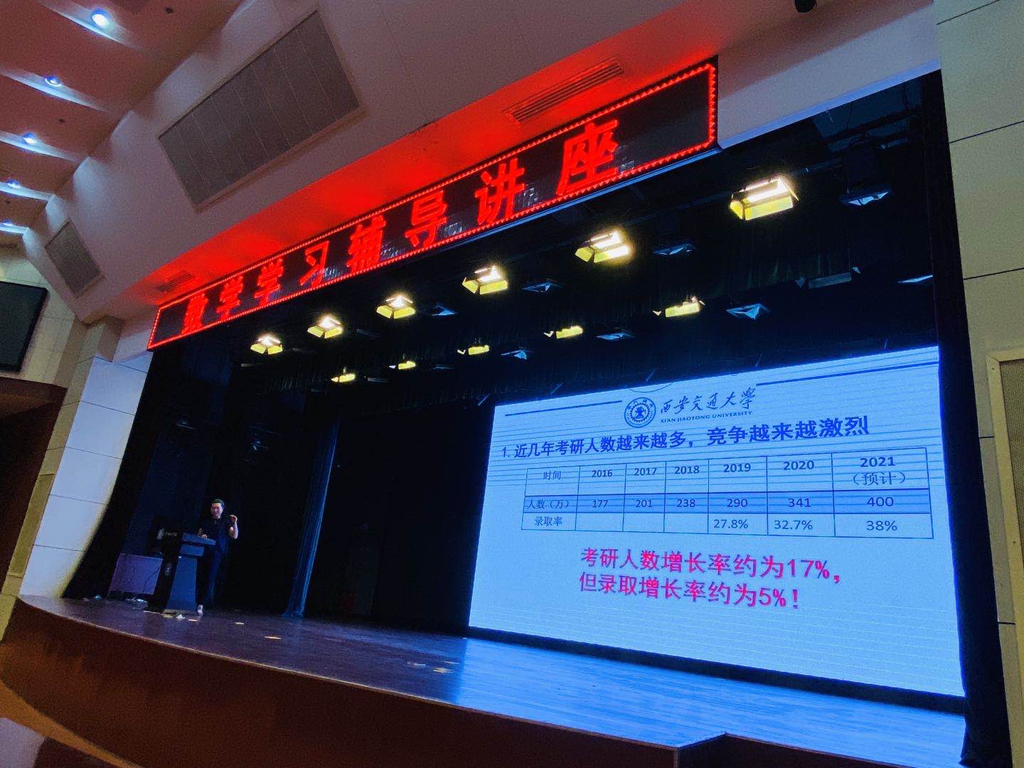 为帮助我院学生明确考研目标,了解相关考研信息,掌握考研技巧,从而更好地挖掘自身潜能,积极开展考研复习备考,yl7703永利官网于6月14日在教二报告厅举行了考研数学专题讲座。本次讲座由院长助理朱旭教授主持,特邀交大教授考研数学辅导团队吴慧卓、张改英老师主讲,教学服务中心副主任袁晓蕾及学院2017级、2018级部分学生到场参会。