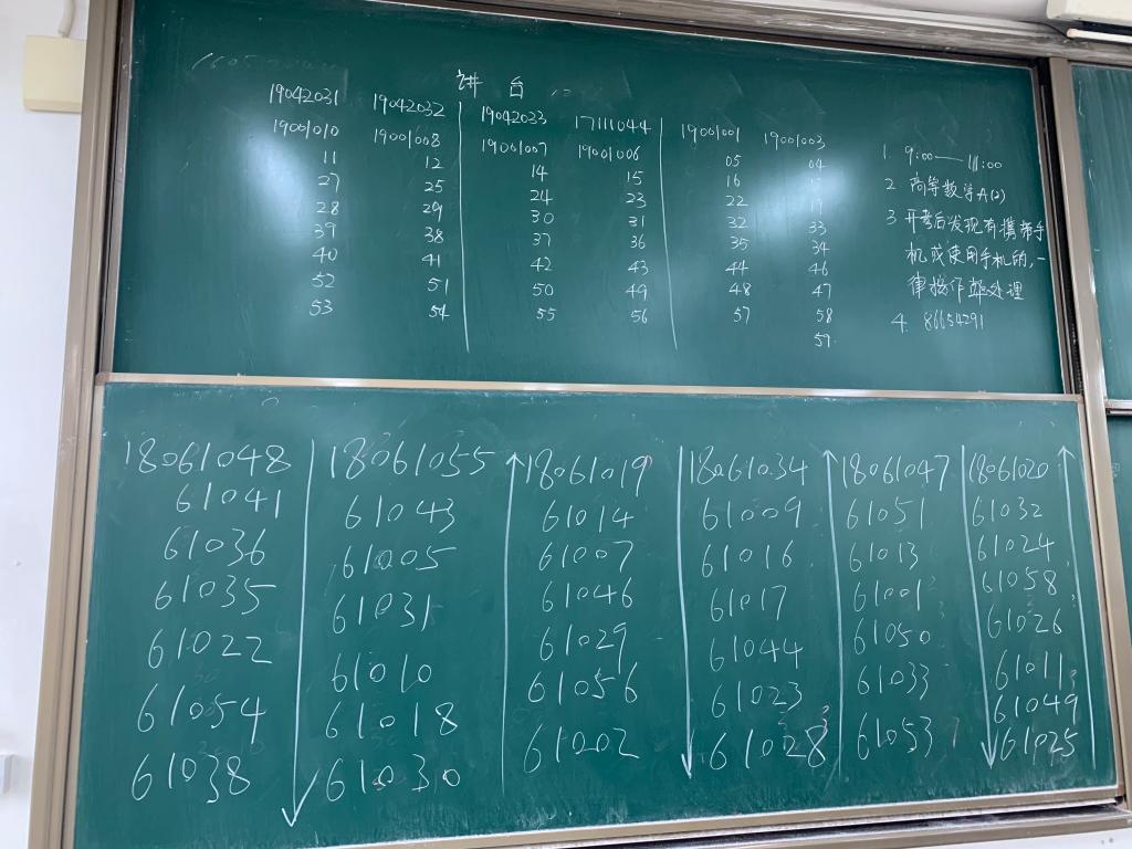 7月17日上午,教学服务中心主任陈晓南、数学教学部副主任张世梅及教学中心其他相关人员对高等数学期末考试考场进行逐一巡视。在巡视的过程中,发现监考教师认真负责,学生们都能认真答题,遵守考场纪律,考场记录单上要求书写在黑板上的内容全部认真书写,学生携带的手机全部摆放到指定的位置。