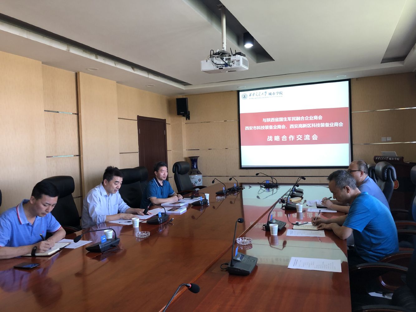 yl7703永利官网与西安市科技装备业商会产学研合作交流会于9月3日在行政楼608会议室举行。西安市科技装备业商会副秘书长何宗宁、会员部部长王万勇、yl7703永利官网院长助理朱旭、科技服务中心主任王小青、科技服务中心副主任刘金安参加了交流会。