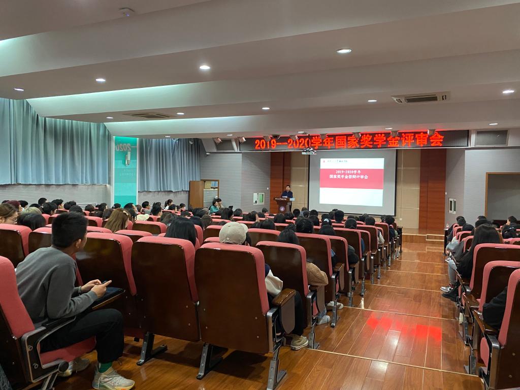 10月14日下午,我院在F100多功能报告厅组织召开了2019-2020学年国家奖学金答辩评审会。学院党委书记张爱萍、副院长朱旭、教学服务中心主任陈晓南、学生服务中心主任张学堂、科技服务中心主任王小青莅临指导并作为评审专家对各系推荐的国家奖学金候选人进行了综合评审。各系学生工作主管、部分辅导员及160余名学生进行了现场观摩。评审会由学生服务中心副主任辛红伟主持。