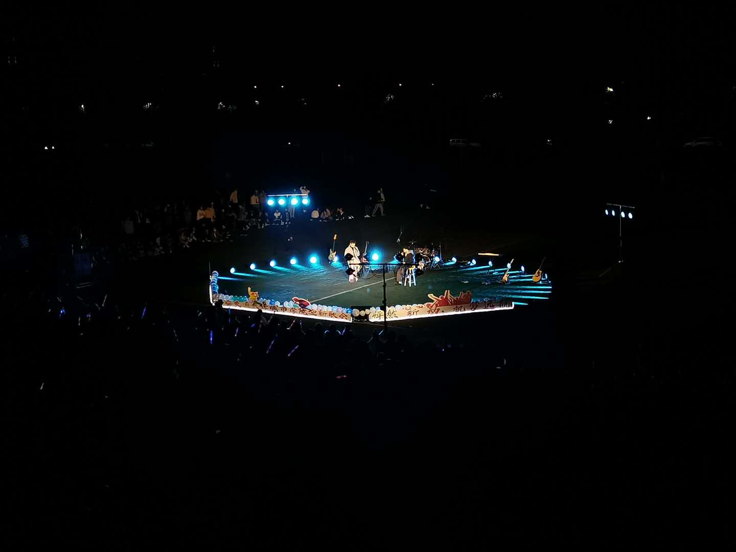 随着强劲的鼓点响起,迎新歌会在热情洋溢的开场舞《get your love》中拉开序幕。本次迎新歌会共分为“懵懂”“青春”和“梦想”三个篇章,从三个不同的主题诠释音乐的魅力,呈现丰盛的视听盛宴。15首耳熟能详的歌曲,25名新老生歌舞演员通过歌曲《我的梦》《最初的梦想》《莫吉托》《说好不哭》《披风》等青春舞曲完美诠释了梦想与期盼、充分展示了青年大学生活力四射的阳光形象。由治愈疯人院、风铃海乐队和文化艺术中心舞蹈团带来的《when you disco》《Don’t worry》《like some leaves》等歌舞曲,饱含着铿锵自信和对未来的无限希望,绽放着青春与梦想的光芒,将整场歌会推向高潮。期间,幸运的抽奖环节为整场歌会带来了神秘而欢乐的气息。整场晚会精彩不断,高潮迭起,欢呼声一浪高于一浪,赢得台下阵阵掌声。最后,一首《小幸运》为本场晚会画上了圆满的句号,向全体师生表达着深切的祝福与美好的希望。
