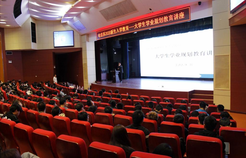 为促进2020级新生树立学业规划理念,引导学生科学的规划学业,推动优良学风建设,电气与信息工程系于10月28日特邀我院副院长朱旭教授在教二报告厅为2020级新生做了“新生入学教育之学业规划教育”讲座。电信系主任赵录怀教授,系主任助理张永超副教授,学生工作主管王姣,学生工作主管樊超,班主任丁玎,辅导员张敏娜、张华以及2020级全体新生聆听了讲座。活动由王姣主持。
