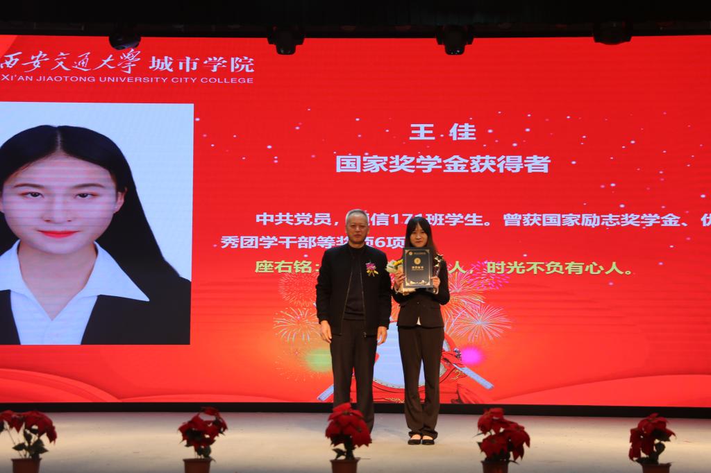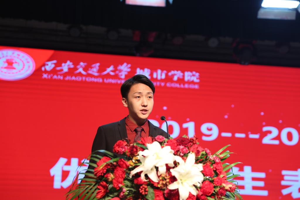 颁奖仪式后,国家奖学金获得者于珍妮作为优秀学生代表发言。他以“变得勇敢、有所准备、坚持不懈”为主题词与同学们分享了自己的大学生活和学习心得。通过三个小故事,号召同学们怀揣梦想,勇于追求;提醒同学们认识自己,把握当下;引导同学们知恩图报,对老师及家长心怀感恩。