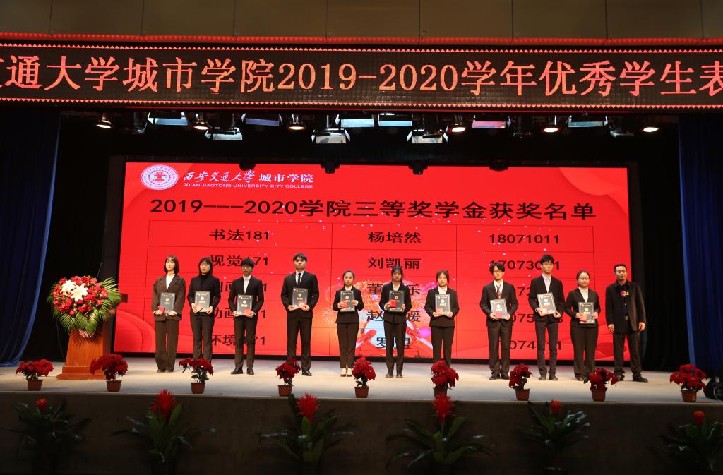 伴随着嘹亮的国歌声,表彰会正式拉开序幕。首先,党委书记张爱萍宣读了2019-2020学年优秀学生、先进集体的表彰决定,并宣布学院向翟宝怡等6名学生授予“优秀学生标兵”称号,向邢鲁鑫等4名同学授予“优秀学生标兵提名奖”称号,隆重表彰了刘宇等11国家奖学金获得者、李登等266名“国家励志奖学金”获得者,向周超等2330名学生授予“优秀学生奖”称号,向董文俊等3名学生颁发席酉民“创业与竞争力”新星奖。随后,与会领导分别为获奖个人和集体颁奖。