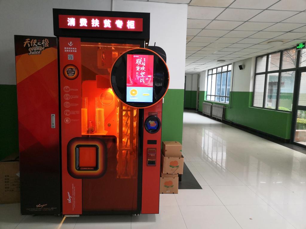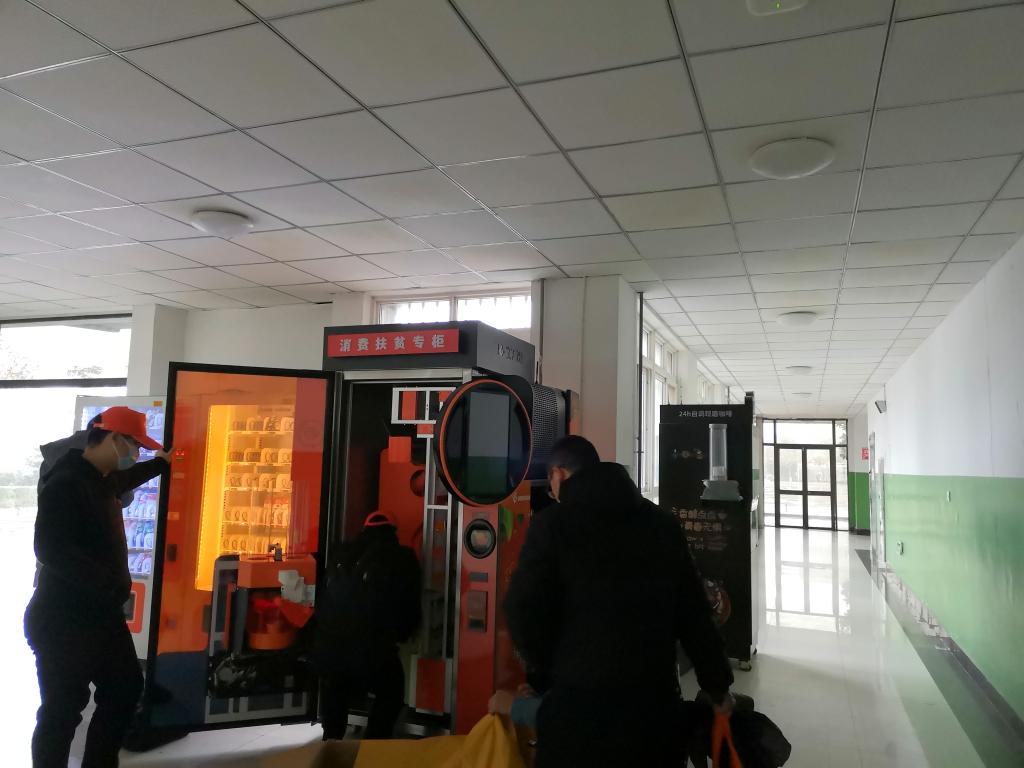 为贯彻国务院扶贫办等七部委相关文件,根据省委教育工委扶贫办要求,12月2日,由我院与扶贫专柜合作建设企业——上海巨昂科技有限公司共建学院消费扶贫专柜一期项目安装完成,在行政楼、教学楼、学生公寓共安装果汁机和售货机5台,将为师生提供鲜榨果汁和预包装食品等消费扶贫产品。