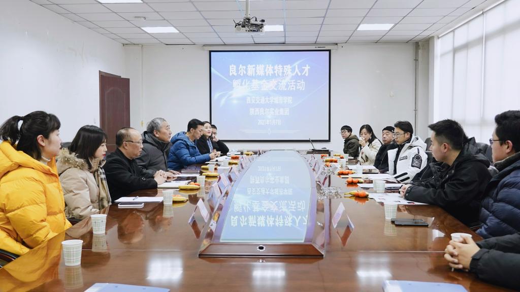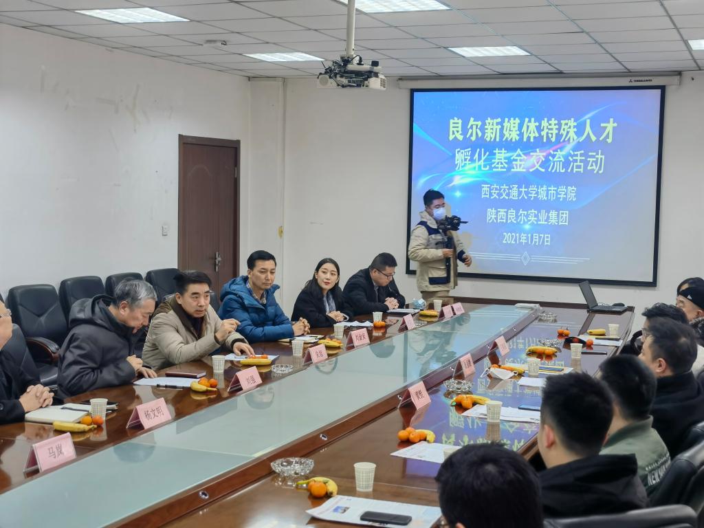 为遵循“产、学、研”基本规律和发展方向,进一步落实新媒体特殊人才培养计划。1月7日下午,yl7703永利官网传播系与陕西良尔实业集团(以下简称良尔集团)就良尔新媒体特殊人才孵化基金项目召开交流座谈会。良尔集团董事长魏思捷、CEO黄挺、CFO王隆盛等相关负责人与我院副院长朱旭,科技服务中心副主任刘金安,传播系常务副主任刘强,主任助理王玢,系办公室主任孙晓斌,教师杨文明、马岚、孙菡忆、杨屹琨参加此次活动。