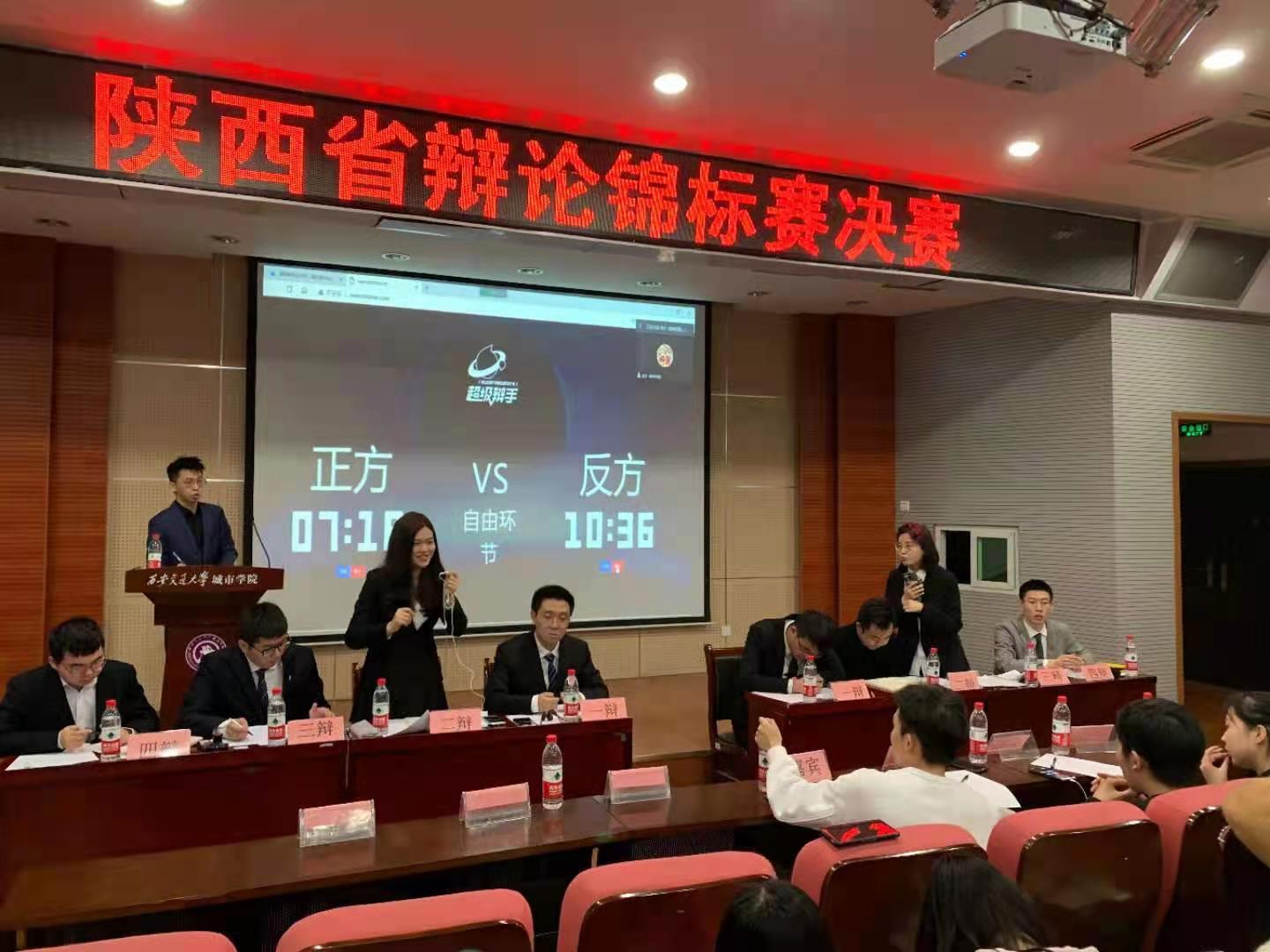 决赛阶段,延用复赛及半决赛的新国辩赛制规则,经过前期激烈的角逐,西北大学和陕西师范大学代表队脱颖而出,一决胜负。双方选手在立论,驳立论,智辩等各个环节中引经据典、唇枪舌战,个个妙语连珠的辩论一次次将比赛推向高潮。超级辩论环节,面对评委老师的提问,选手们沉着冷静,一一作答。最终,陕西师范大学代表队胜出,获得本次大赛的冠军,陕西师范大学刘嘉鼎荣获陕西省辩论锦标赛总决赛最佳辩手。