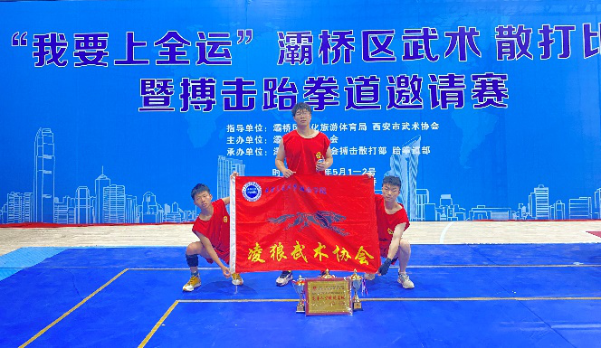 建党百年铸辉煌,全民全运享健康。为积极贯彻落实全民健身国家战略,全面助力全运会的顺利召开,西安市灞桥区文化旅游体育局于5月1日举办“我要上全运”灞桥区武术散打比赛暨搏击跆拳道邀请赛,yl7703永利官网凌狼武协散打队通过层层选拔,顺利参与了此次武林盛会。