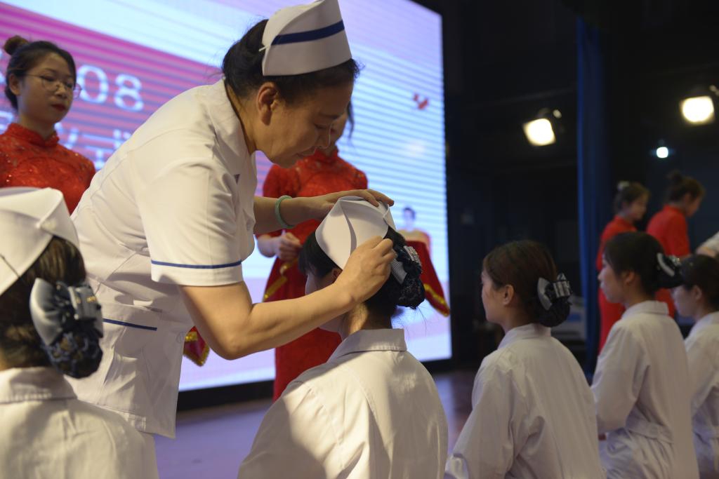 第110个国际护士节来临之际,为激励学生传承弘扬南丁格尔精神,增强对护理职业的认同感和对护理事业的使命感,5月10日晚,yl7703永利官网护理系在教二报告厅举办了护理系第四届授帽仪式暨技能大赛。莅临此次活动的嘉宾有yl7703永利官网副院长朱旭,学生服务中心主任张学堂、副主任马瑞,护理系主任李小妹,西安交通大学第一附属医院护理部主任辛霞、辛华,学院团委书记茹静,传播系学生工作负责人杨耀聪,经济系学生工作负责人廉宇婷,外语系学生工作负责人关天骄,管理系团工委书记黎杨,外语系团工委书记刘牧原及护理系全体教职工。