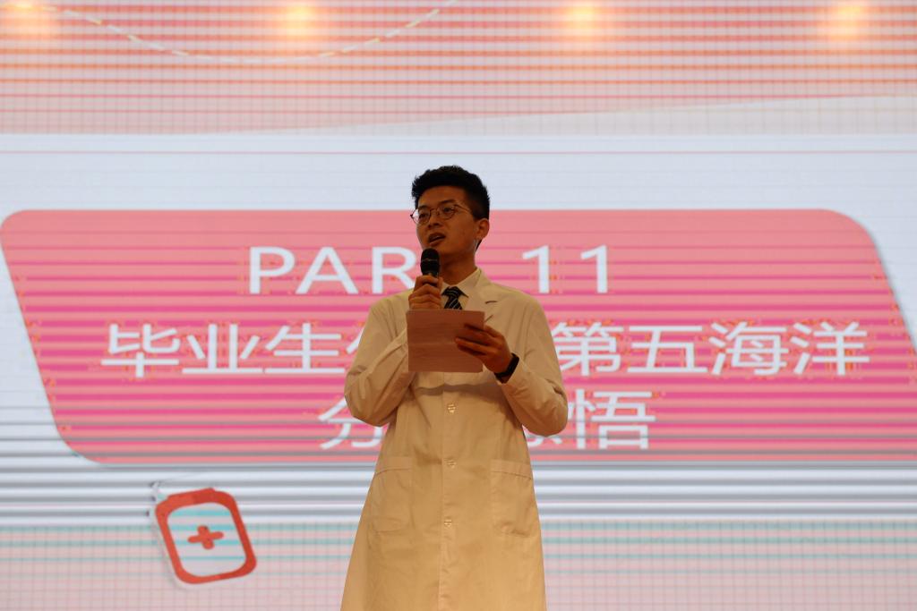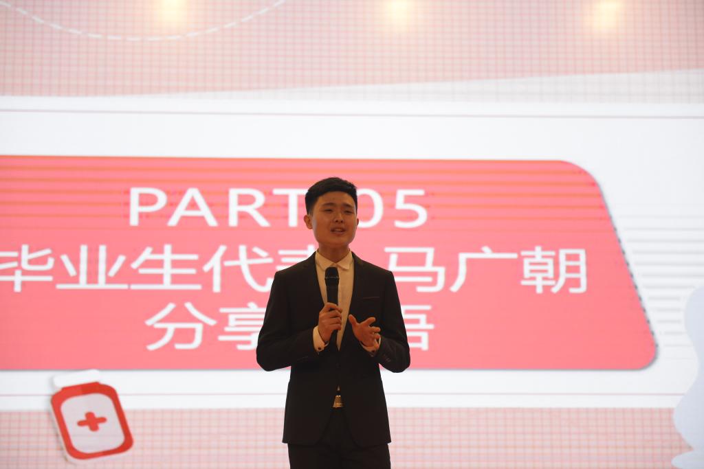 接着,护理系优秀毕业生代表马广朝同学和第五海洋同学分享了自己的实习经历和对学弟学妹们的美好祝愿,同时表达了对学校和老师的感恩之情以及成为一名优秀医务工作者的坚定决心。